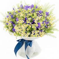 Ромашка отлично смотрится как самостоятельный цветок в букете, так и в сочетании с полевыми и небольшими цветами (ирисы, подсолнухи, кустовая роза, лизиантус и тд.).